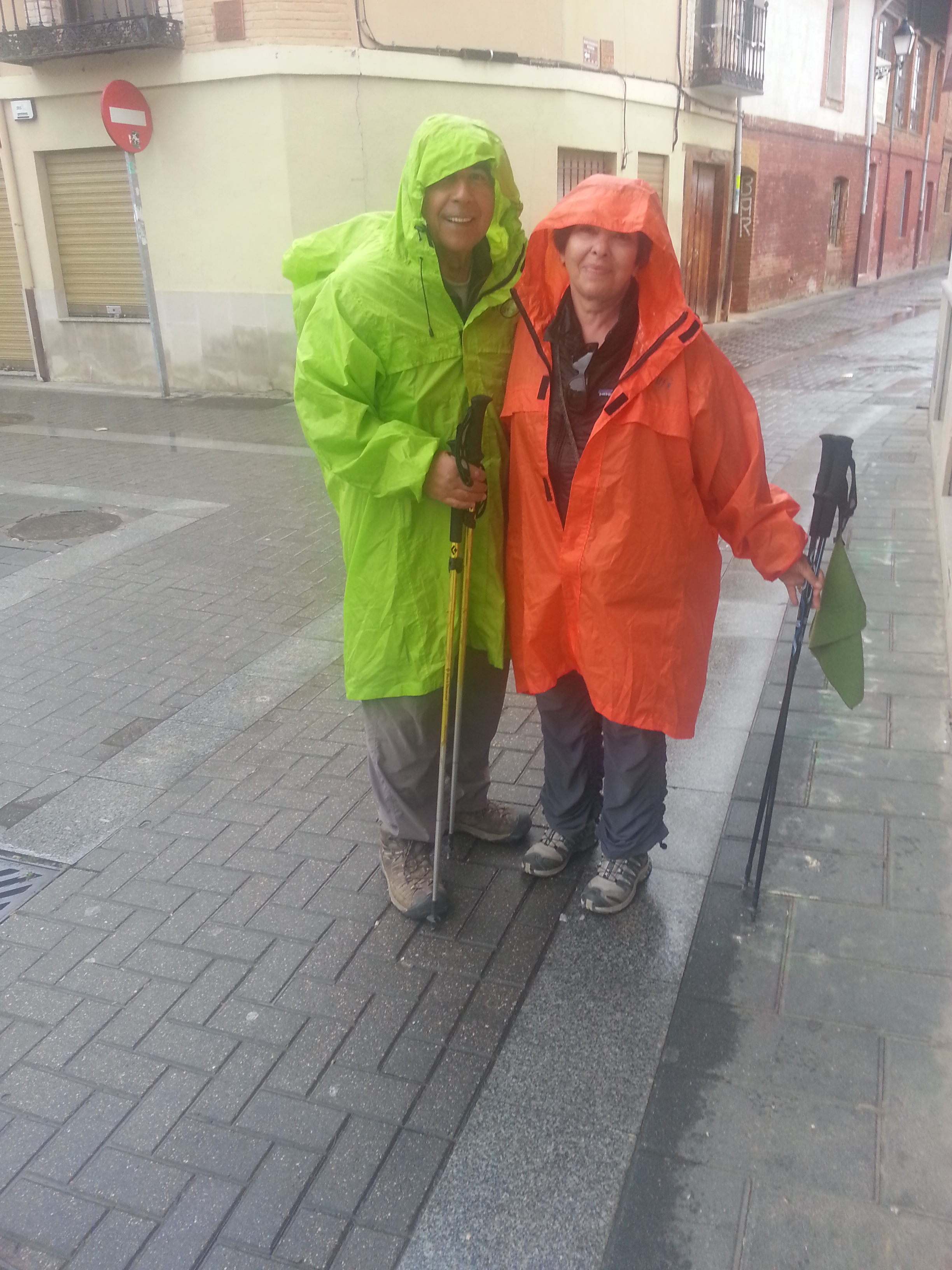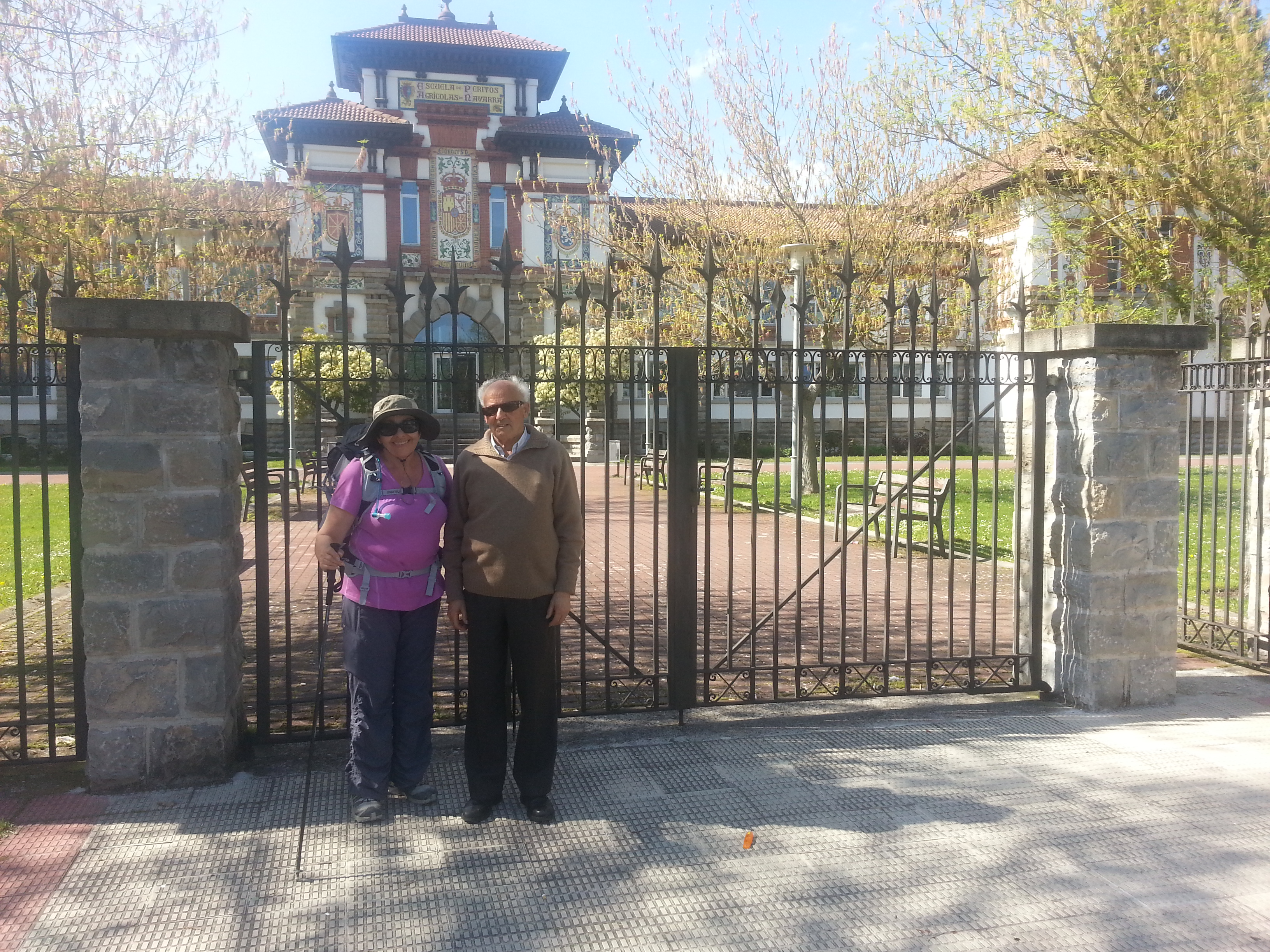 Around the middle of April we were just approaching  Pamplona when a slender elderly fellow approached us.”Hello, my name is Miguel “, he said. He then started walking along side us.  He started to show us  points of interest in his town. “This is our government building, beautiful no?” And then “this is our university” I thought “what a nice guy” and I was thinking that here is a lonely retired guy who feels useful by greeting visitors. I took a photo of Miguel & Angie in front of the university –  see photo above!