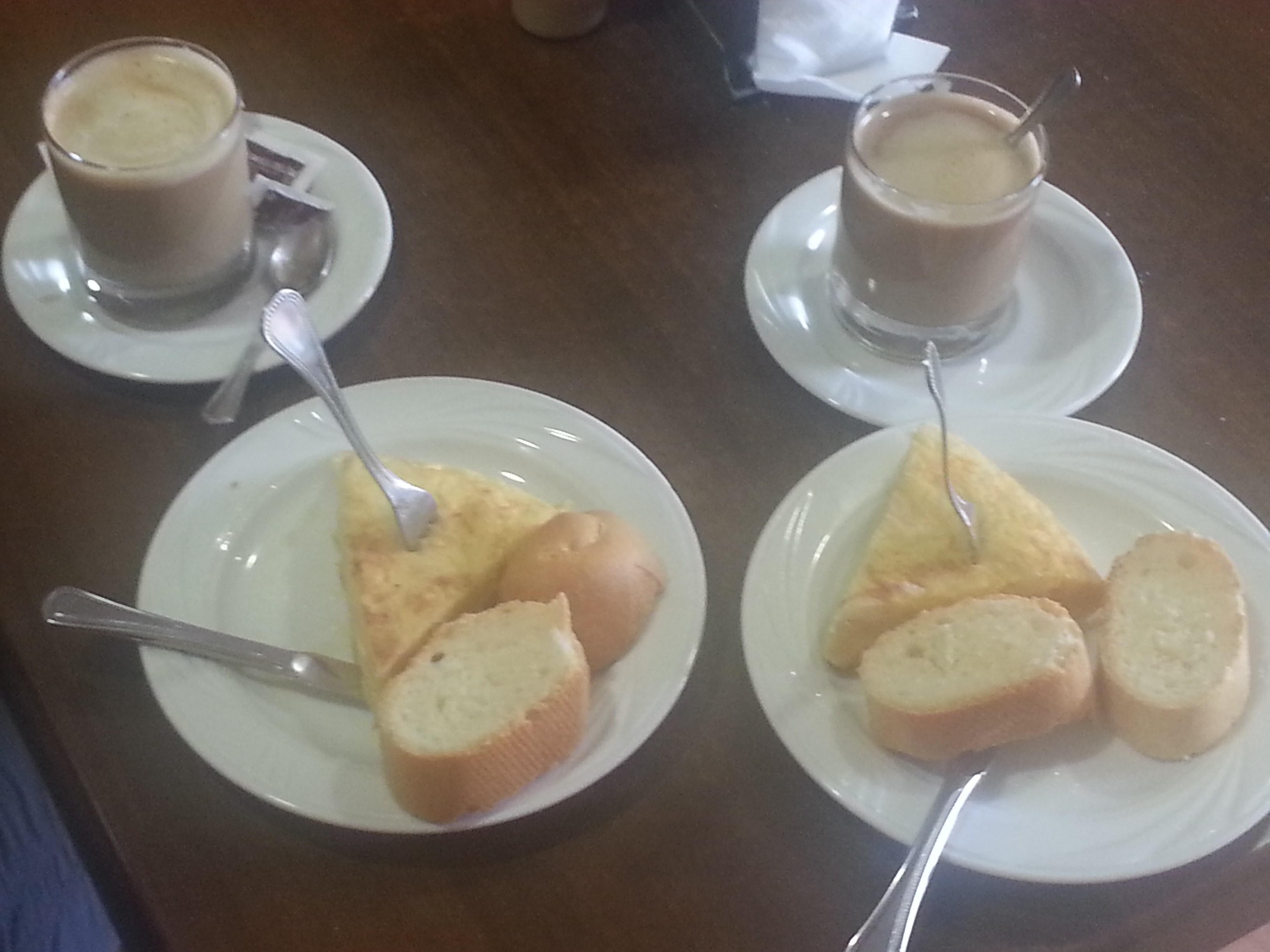 But today we had tortilla. Not what you think. These are potato based. For lunch, potato and eggs. They are formed in the shape of a pie. Here is what they look like:
