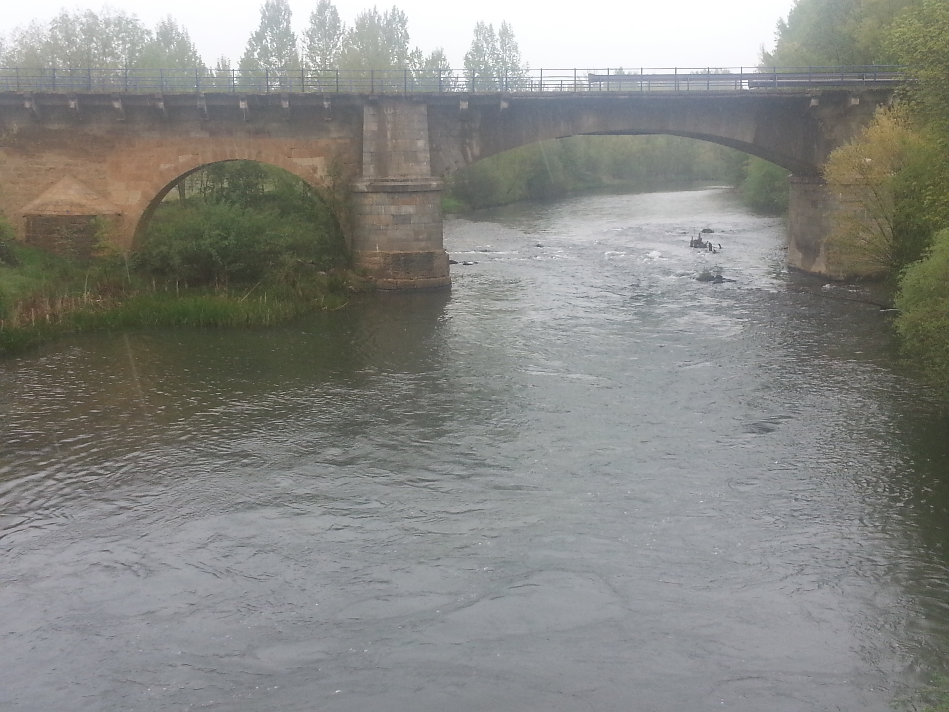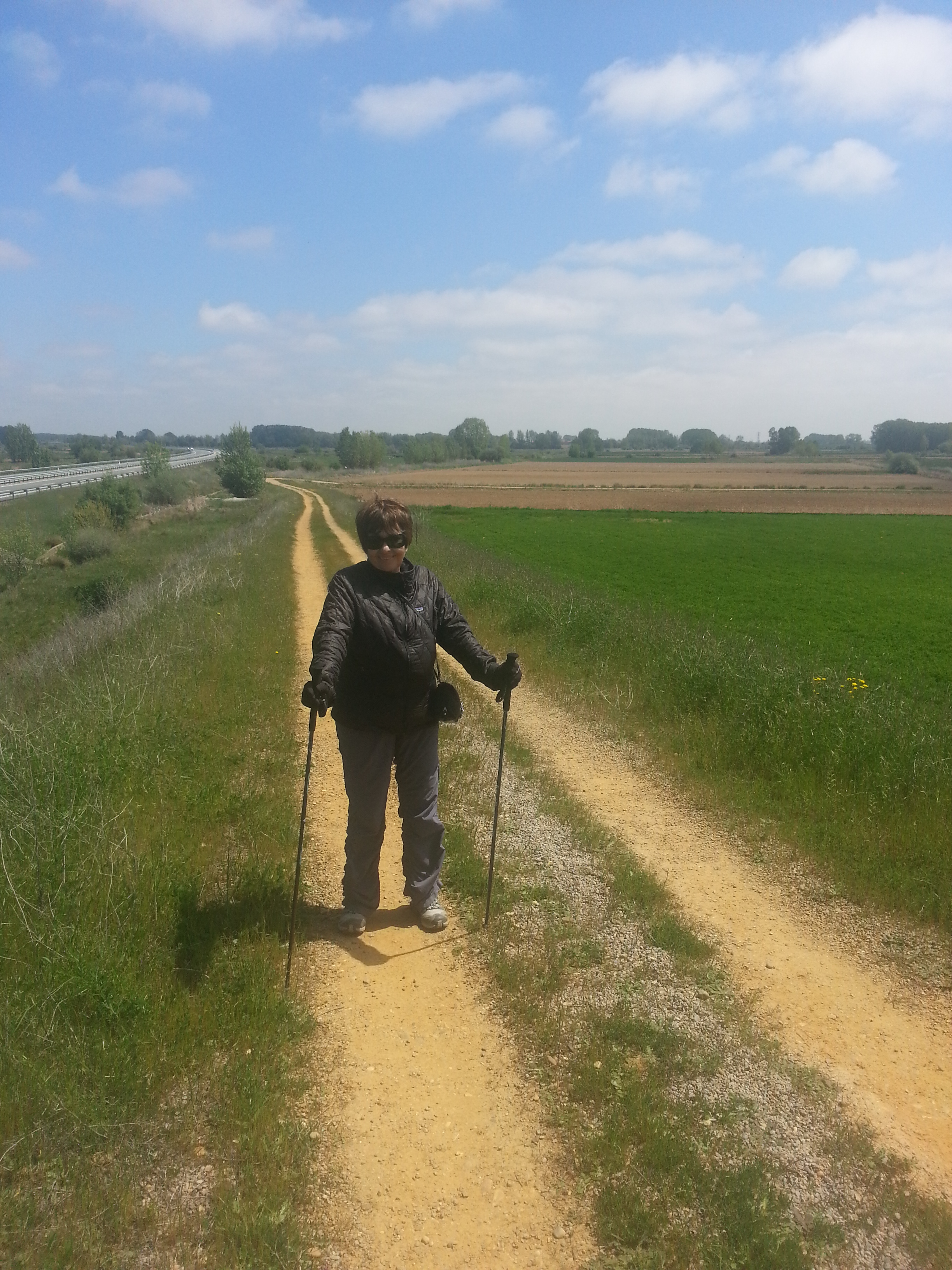Thursdays walk was straight forward. Level, good trail conditions with light rain through the 12 mile walk. Here are some photos taken along the way. This leg took us 7 hours walking time. It took longer because the trail went through the middle of the city. 20130508_200359 MEET.  HENRY & JEAN FRANCOIS We met Henry & Jean Wednesday evening as we were staying at the same Casa Rural. Each year for the past 3 years. they have walked 5 days on the Camino each time.  They start where they leave off the previous year. They both work and live in France. Henry resides in Metz & Jean Francois in Dijon. They are both married and are great Friends.. They average 25 miles a day for 5 days! They both walk the Camino in memory of Henry’s son Jean Baptiste, who died 2 minutes after birth 8 years ago. Jean Francois travels along with Henry because… well…he is a good friend. We enjoyed having dinner together and meeting them. 20130509_090550 FRUIT (S) OF THE LOOM! 20130509_100534 The further west we travel,  the trails seem to be in better shape. The trail for the past 2 days had a covering of decomposed granite. There were water puddles but easy to navigate around. During the previous weeks, rain turned the trail into a mud pit….very difficult to maintain speed and rhythm under those conditions. 20130509_111839 20130509_112051 20130509_094234 EMBEDDED. BRONZE PILGRIM SHE’LL TO SHOW THE WAY THROUGH THE CITY