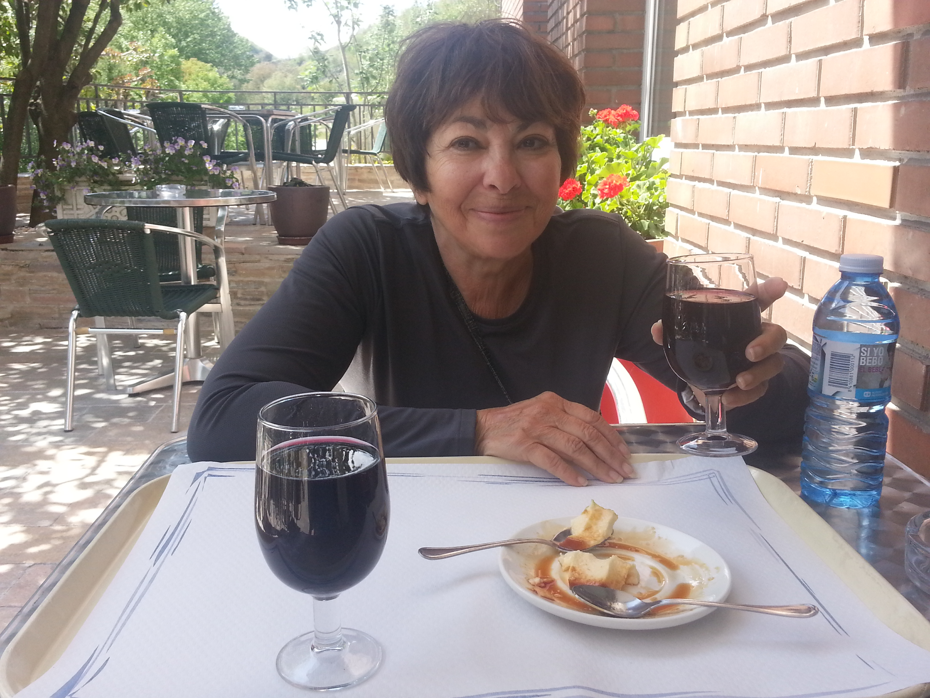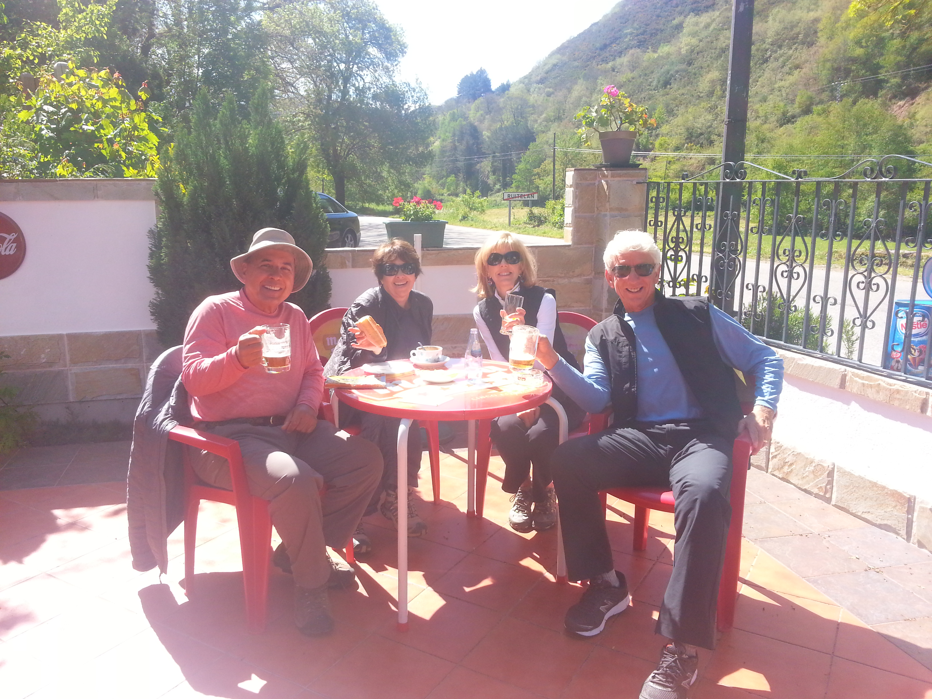 After two hours we stop and take a snack break. If we are at a Pueblo, we buy snacks from a local bar. We check our maps the night before so that if there are no pueblos after 2 hours, we pack some snacks in our backpacks. After 3 to 4 hours we stop for lunch for a half hour. Same thing as with snacks – if at a Pueblo we buy lunch at a bar, or we eat our packed lunches. It is at these brief stops, conversations happen because there is hardly any talking on the walk. We also meet other Peregrinos at these lunch or snack stops. Friends we have not seen for maybe 2 or 3 days may end up at a lunch break. Fantastic when this happens.